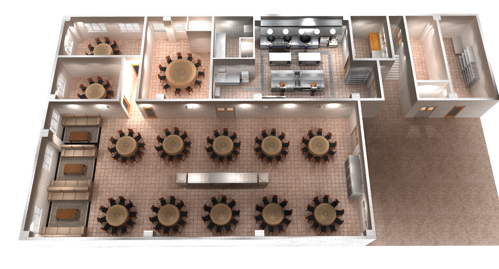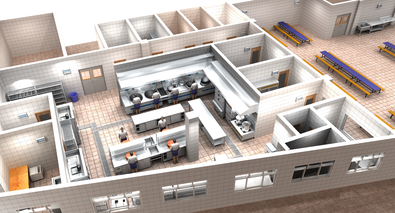 我們可根據(jù)客戶的各種需求,廚房的具體環(huán)境,嚴格遵循消防、衛(wèi)生及環(huán)保規(guī)定,為客戶設計一個最佳布局方案和最優(yōu)化的設備選配,使設備能充分發(fā)揮其功能,達到實用、方便、衛(wèi)生、美觀的效果。 同時提供合理的廚房設備布局平面圖,相應的給、排水圖,電路配置圖,排送風系統(tǒng)工程圖。